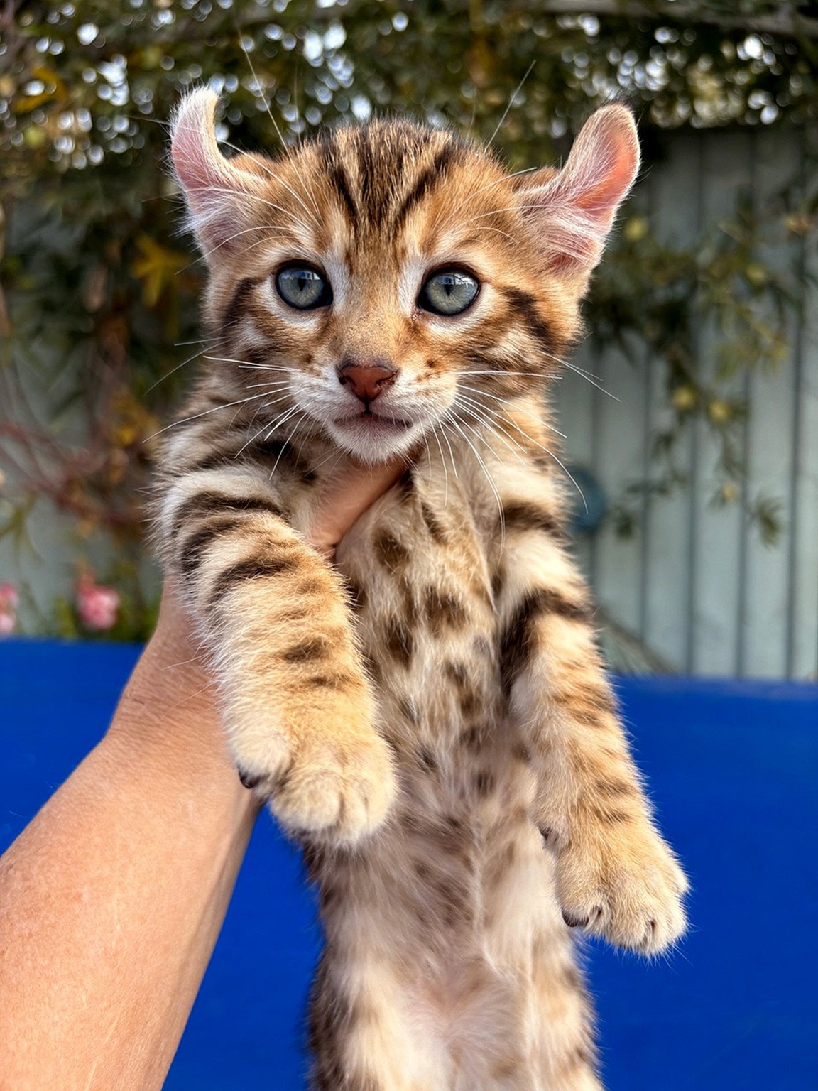 I have never seen a girl like this before, she definitely looks like a wild cat cub,  just awsome! absolutely breath taking rare Keetso polydactyl curled eared snow leopard torbie rosetted female. She  has a gorgeous wild looking head. and will become even more spectacular as she grows into an adult.  Fabulous  loving personality and bags of character. A  girl of this quality is extremely rare and definitely one I should have kept myself. £3995 - reserved for nataliia